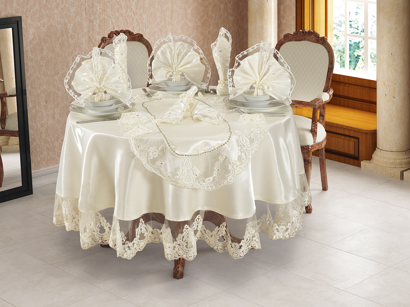 Masa Örtüleri, Yemek Takımları, Runnerlar, Peçeteler, Pike Takımları, Nevresim Takımları, Gelin Setleri,Battaniye Setleri, Yatak Örtüleri,Havlular, Bornozlar, Kırlentler, Dekoratif Yastıklar, Bohça Ve Nişan Setleri, Seccade Setleri , Dekoratif Ev Tekstili Ürünleri.